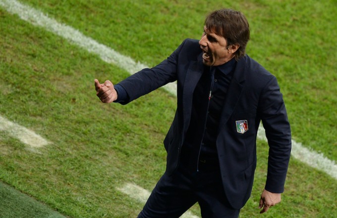 11. Sulla fine del primo tempo, Conte decide di guardare in alto e di imbruttire Dio.