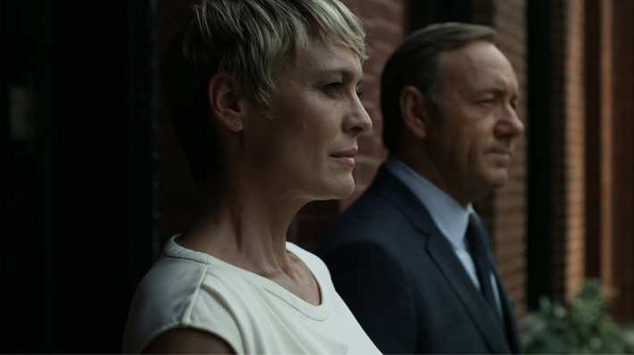 C’è un altro meccanismo narrativo, già presente nella versione BBC, che ci avvicina al protagonista di House of cards: sia Urquhart sia Underwood ci parlano direttamente. I loro a-parte ricordano quelli shakespeariani, con una differenza fondamentale: mentre Amleto, Macbeth e Bruto approfittavano dell’assenza degli altri personaggi per riflettere a voce alta, Urquhart e Underwood si rivolgono allo spettatore per commentare eventi o rivelare intenzioni; insomma, i primi restavano immersi nella finzione, i secondi invece ne escono, smantellando la quarta parete che li separa da chi guarda.