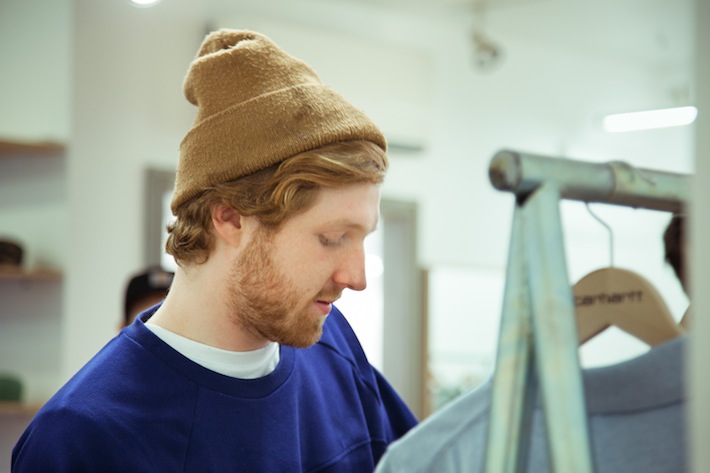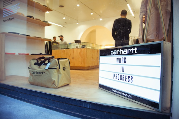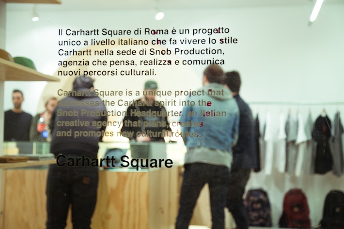 Il Carhartt Square è ben più di un semplice negozio. È uno spazio nel quale convivono tutti gli elementi della filosofia del brand: la musica (c’è uno studio di registrazione sotterraneo); la cultura in generale (si organizzano mostre e c’è un’ampia libreria in legno che ospita un mucchio di riviste e pubblicazioni d’arte, di cd e vinili) e, ovviamente, tutte le novità delle nuove collezioni Carhartt.