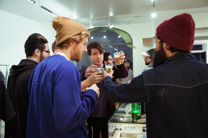 All’interno del Carhartt Square i ragazzi si guardano intorno, provano delle cose, si rilassano e visitano gli uffici dove, davanti ad una immancabile birra, ci sediamo in una sorta di conference room, per fare quattro chiacchiere sul tour ed il loro ultimo lavoro.